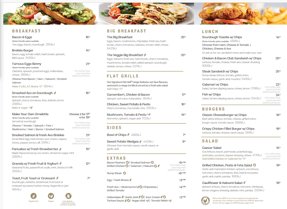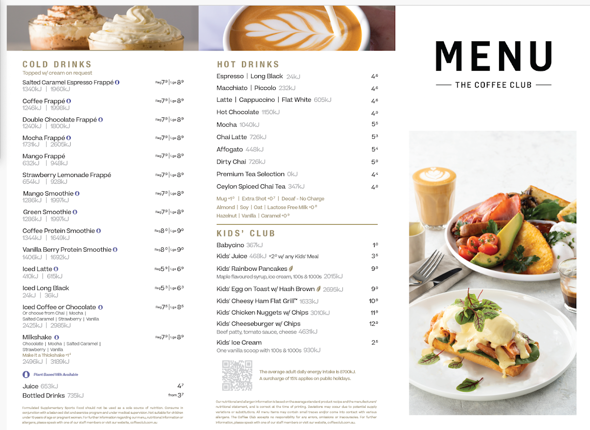 With friendly service and a welcoming atmosphere, The Coffee Club Cafe invites you to enjoy every sip and bite.